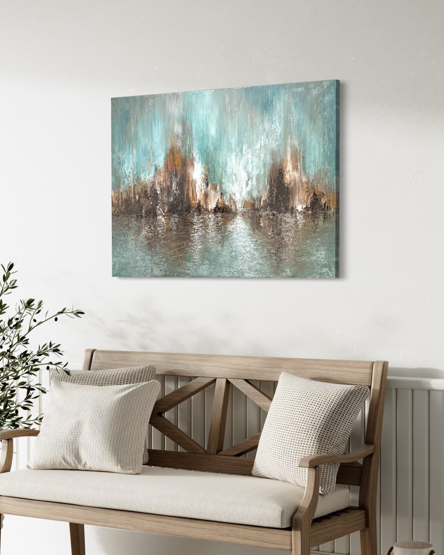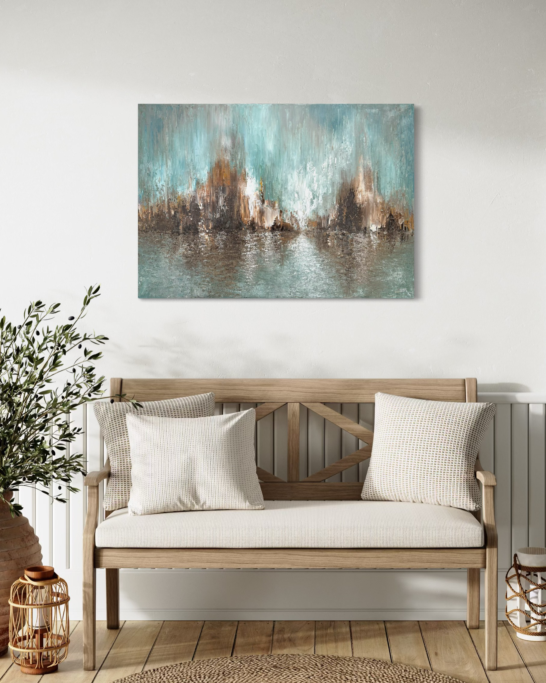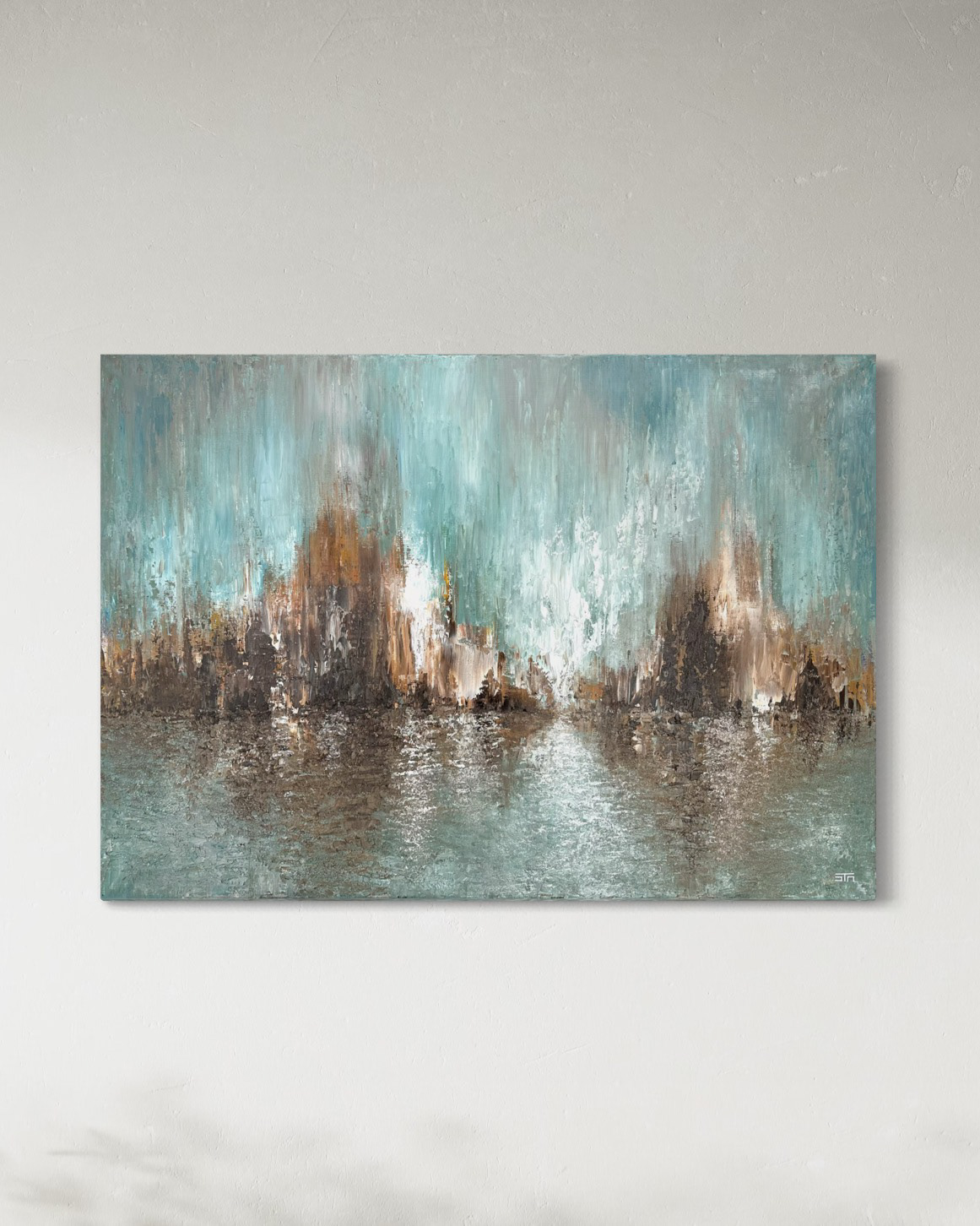 Under en himmel der stråler af nordlys tårner sig høje bjerge op. En tydelig portal formes af disse mastodonter. Den inviterer dig ind mod lyset og lover dig en rejse mod nye horisonter.